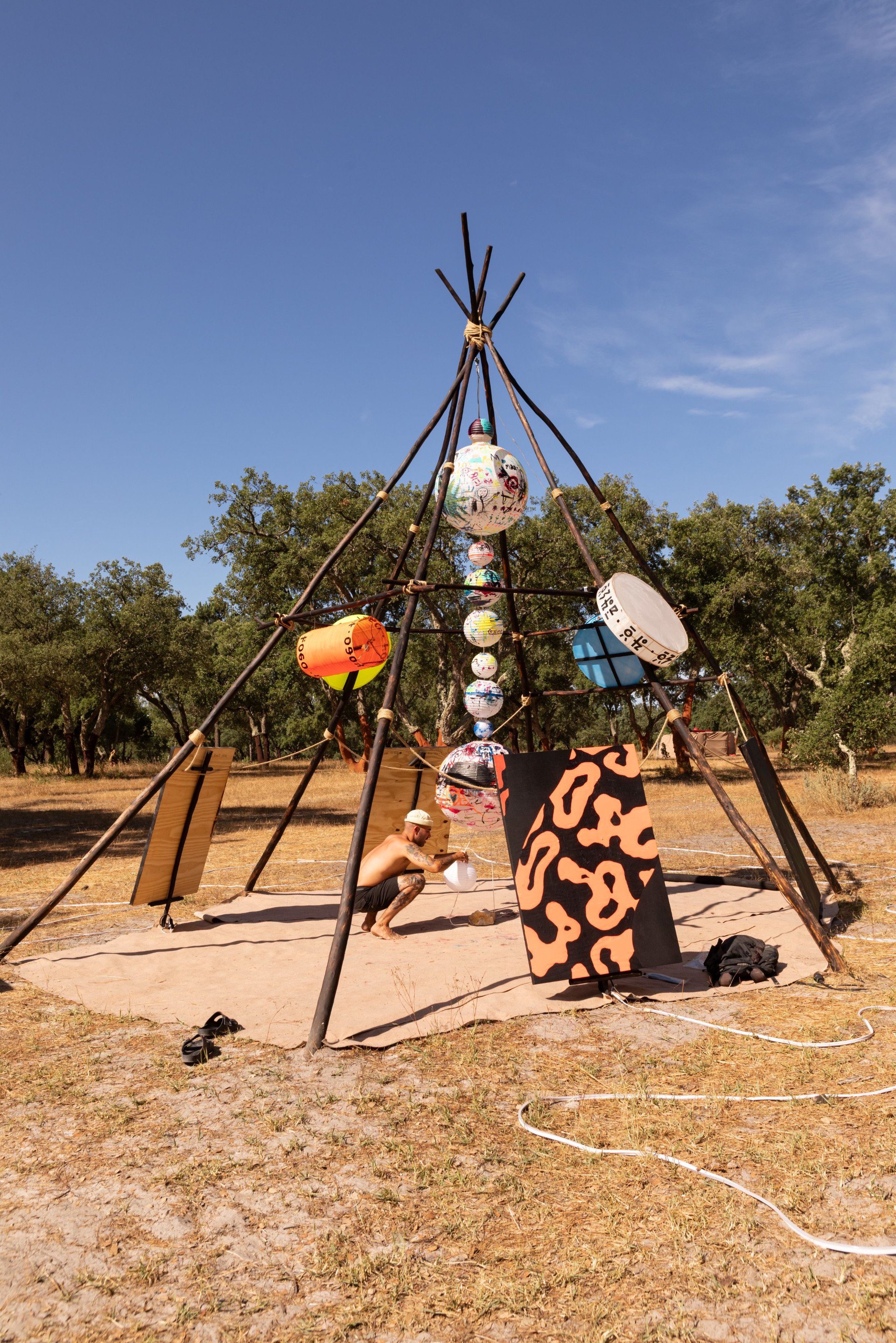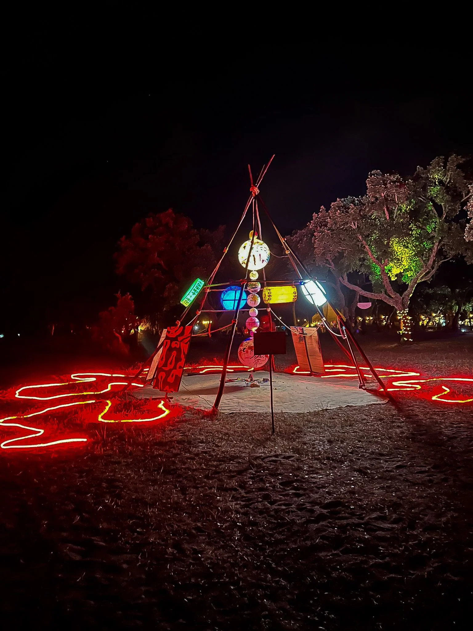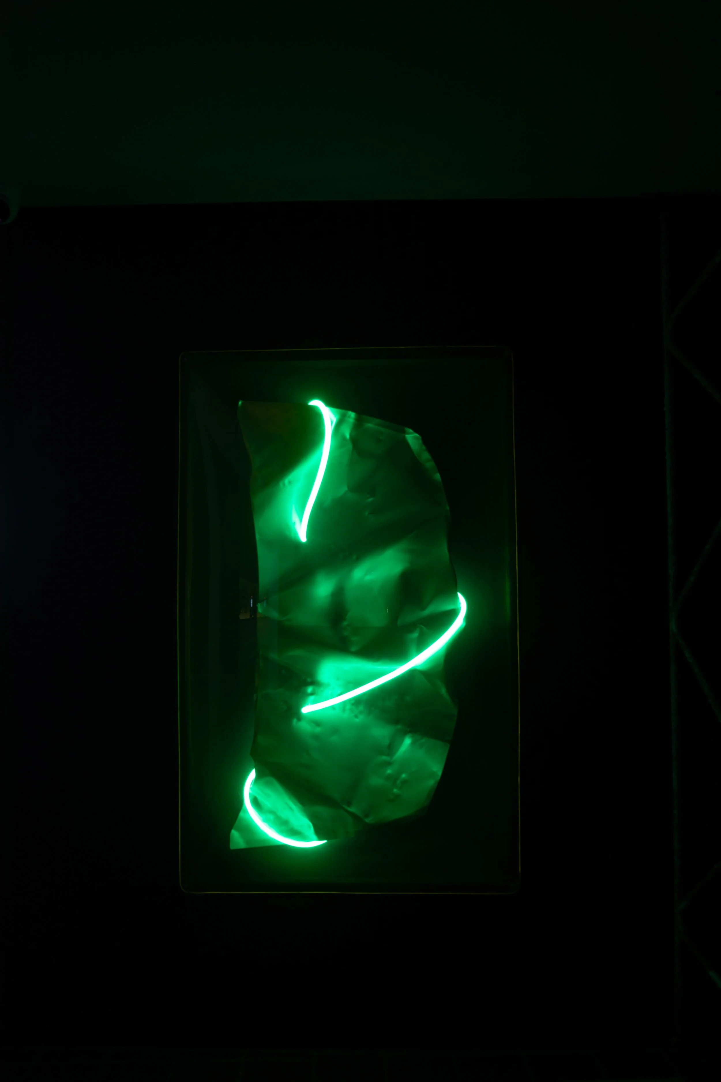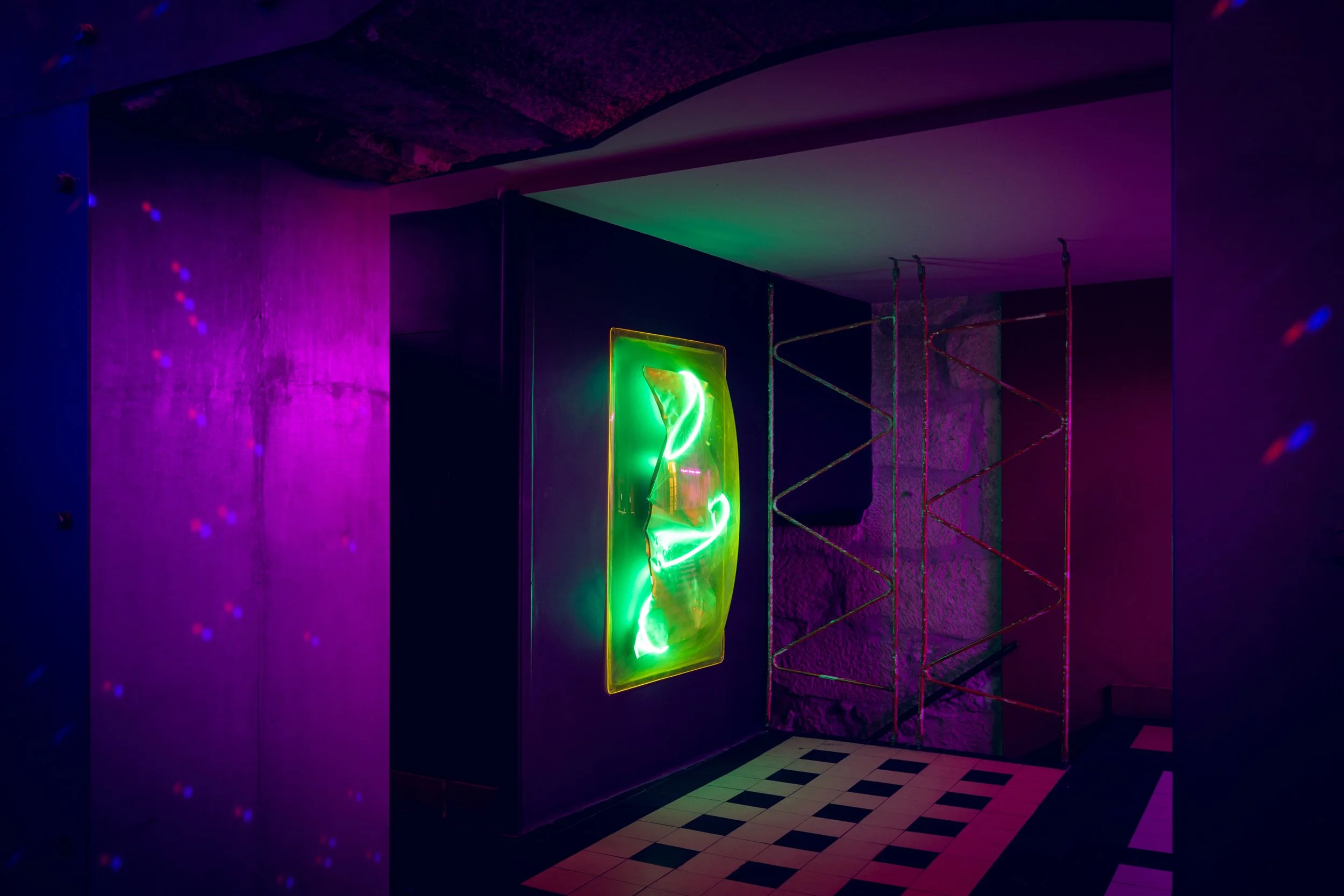 Ninfa & Sátiros . 2023 . bathroom installation . epoxy paint on tile, néon led