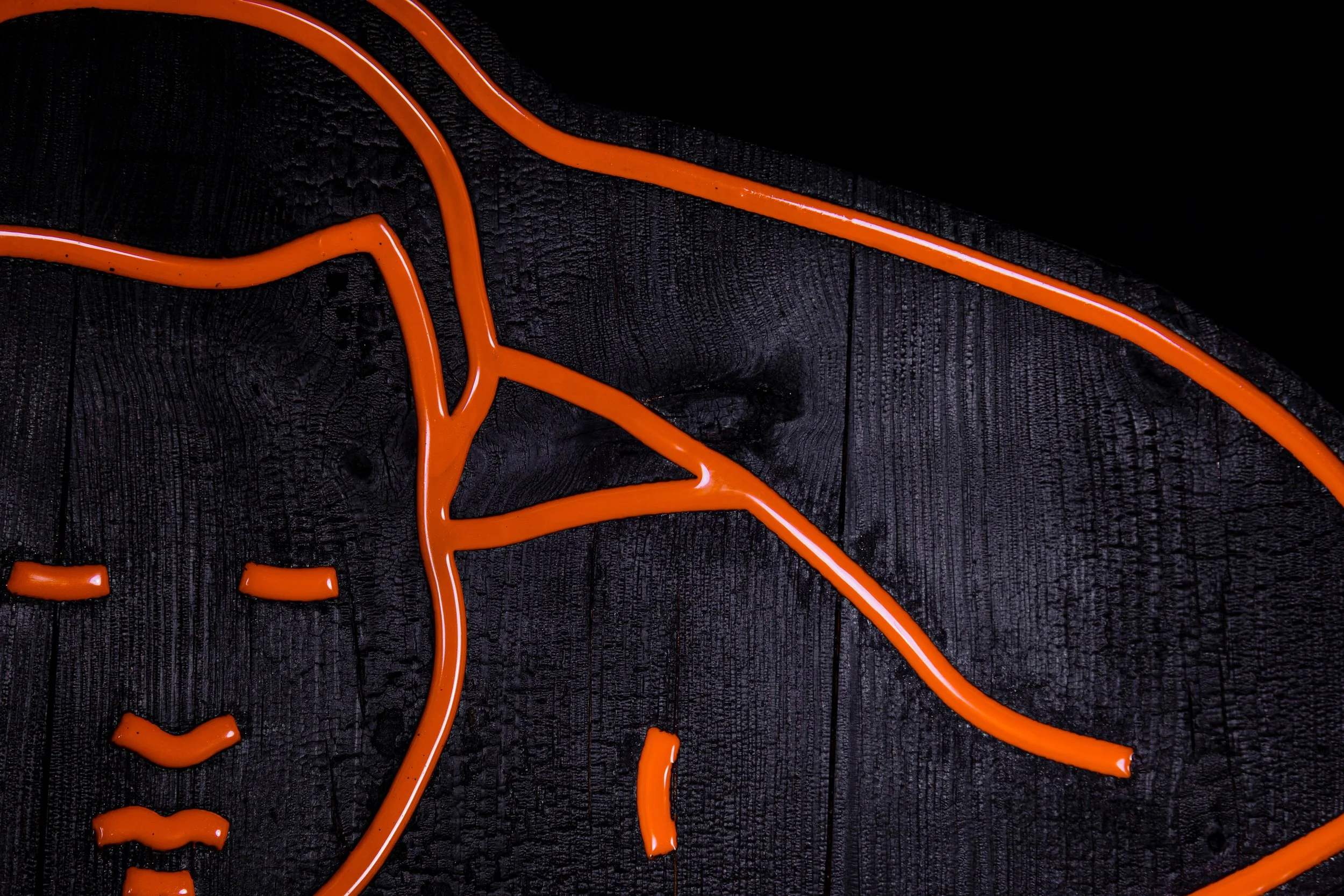 Fogo . 2021 . 100 x 70 cm. acrylic paint on burnt wood, acrylic frame