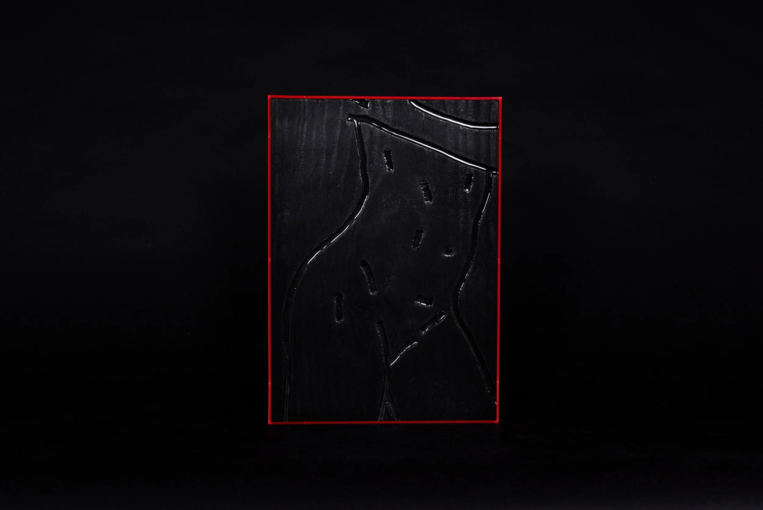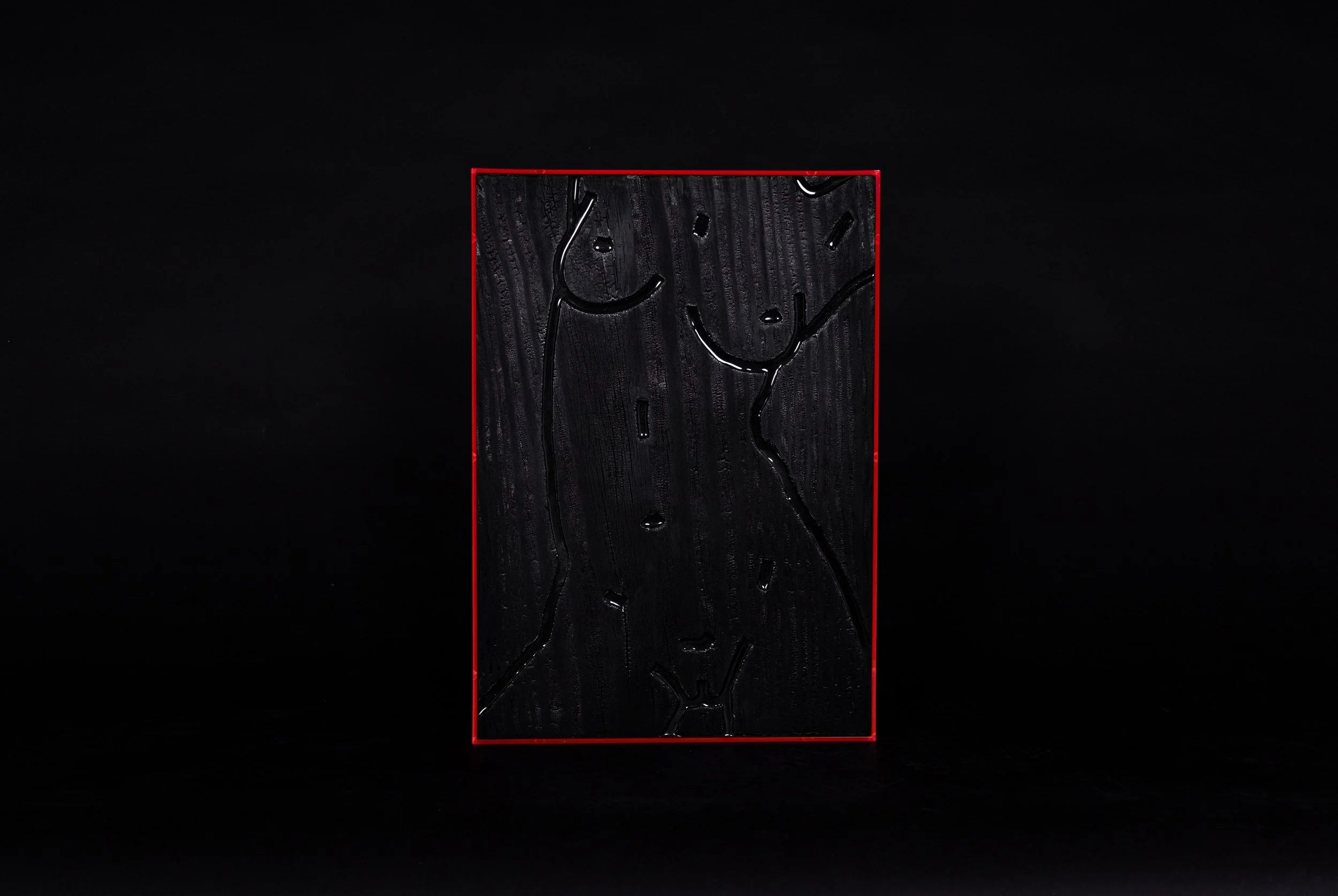 Mulher 1 . 2022 . 42 x 33 cm . burnt wood, pigmented epoxy resin, acrylic frame